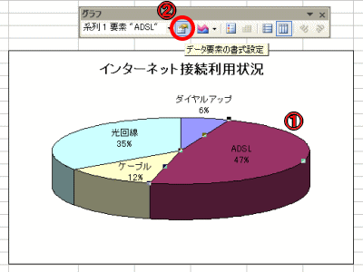 ②グラフツールバーの「書式設定」を選択します。