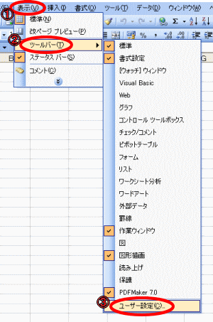 仕事内容や作成したい資料によって、よく使うコマンドはさまざまです。 「自分が」よく使うコマンドをツールバーに登録し、 作業がしやすいようにカスタマイズしましょう! (今回は例として、電卓を登録します。) 方法は簡単☆   ①メニューバー「表示」→②「ツールバー」→③「ユーザー設定」 を選択します。 すると・・・  ユーザー設定ダイアログボックスが表示されます。  ①「コマンド」タブ→分類「ツール」→③「ユーザー設定(電卓マーク)」 を探します。 目印は、電卓マークです。  「ユーザー設定(電卓マーク)」を、図のようにツールバーへドラッグします。 ※場所は、任意で構いません。 すると・・・   ツールバーの中に、「ユーザー設定(電卓マーク)」が追加されます。 ユーザー設定ダイアログボックスは、閉じておきましょう。  ツールバーに追加された、「ユーザー設定(電卓マーク)」をクリックすると・・・   電卓が起動しました☆ 他にも、ツールバーに追加できるボタンはたくさんあります。 これがあったら便利!というものを探してみましょう! ↓この授業の内容は?↓ マンツーマン授業「ここだけ教えて!」ワンポイントレッスン | |